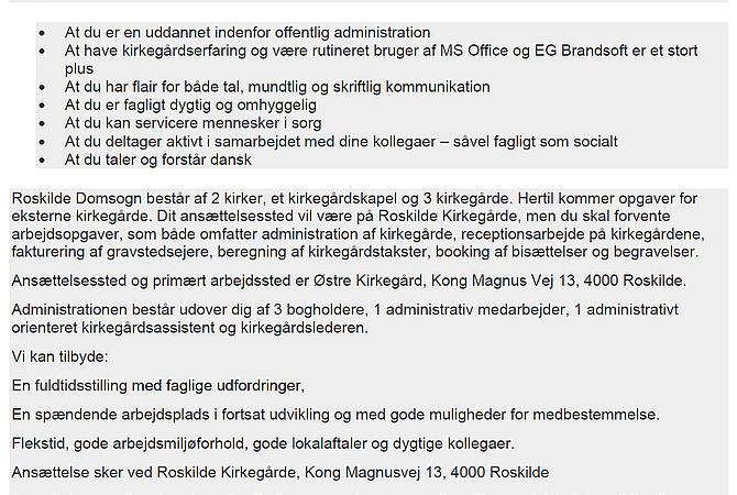 Vi har en ledig stilling som administrativ medarbejder på kirkegårdskontoret.